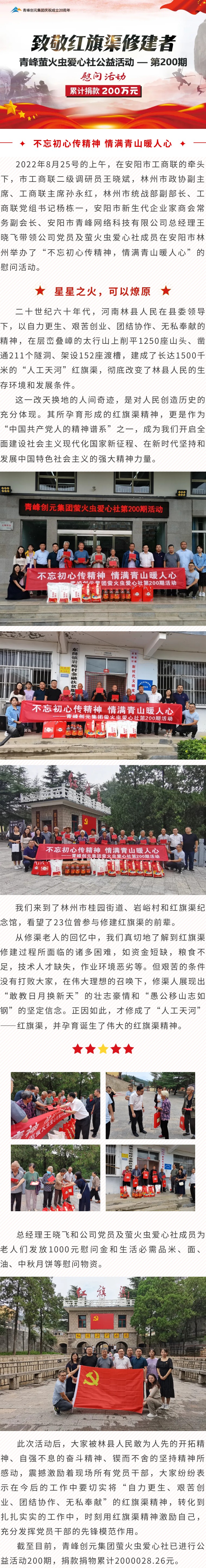 致敬紅旗渠修建者-青峰創(chuàng)元集團(tuán)螢火蟲(chóng)愛(ài)心活動(dòng)第200期(累計(jì)捐款200萬(wàn)元)